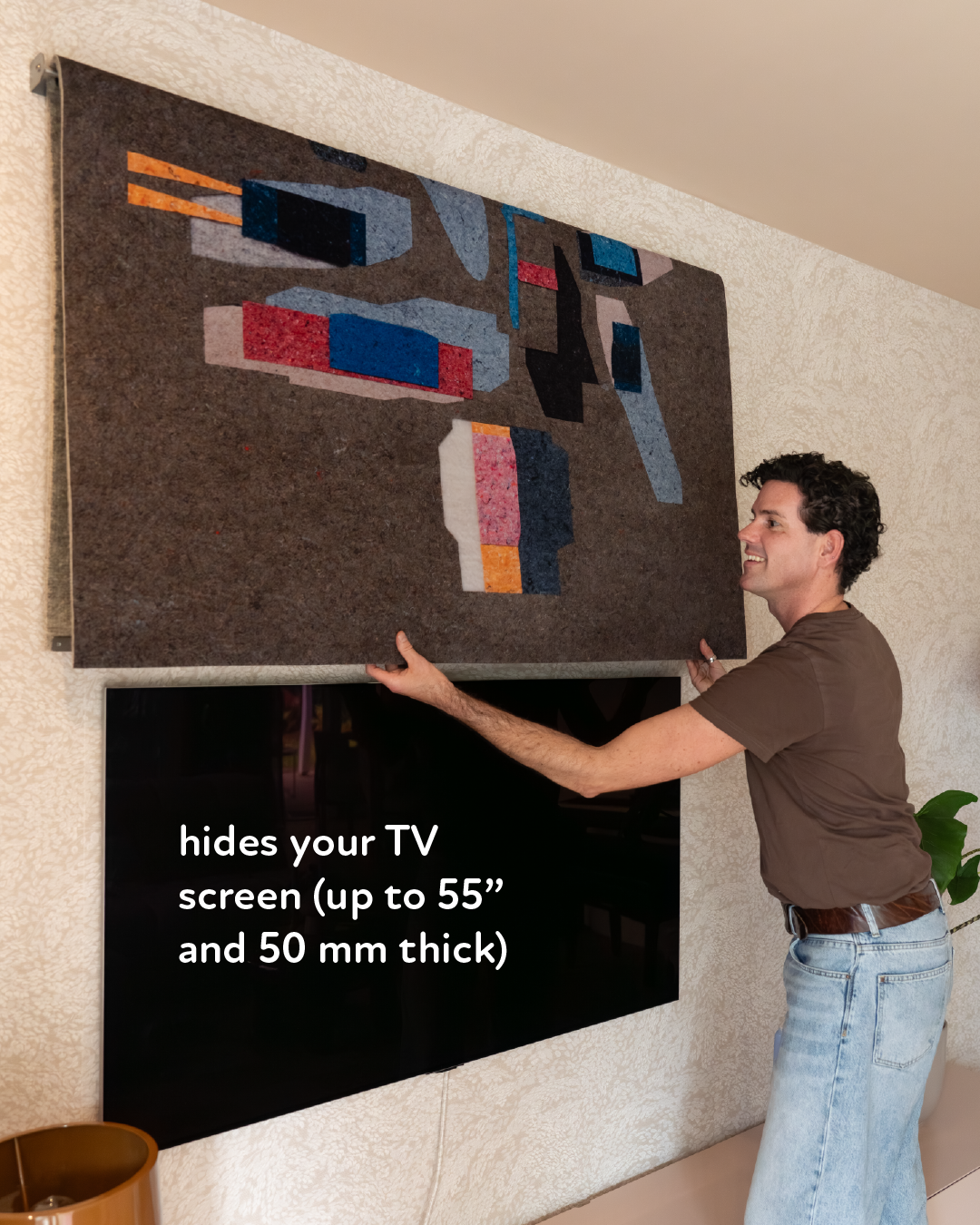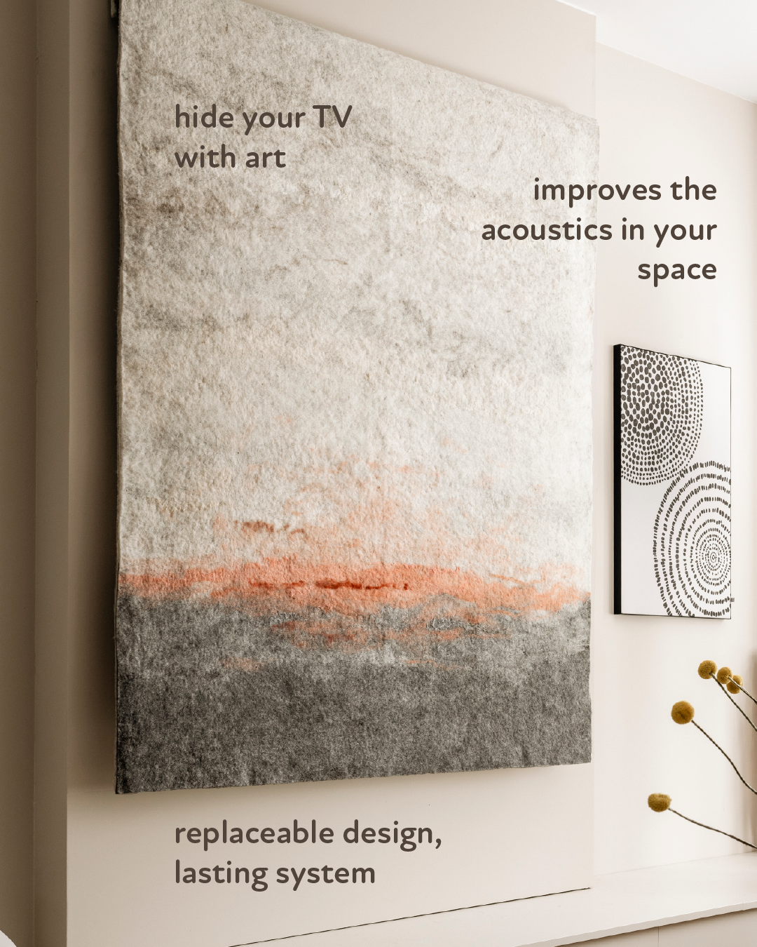 De wandkleden van Woel verbergen op verrassende wijze je tv-scherm aan de muur. De basis van elk kleed is wol dat zorgt voor een positief effect op de akoestiek in je interieur. Je kan kiezen uit geprinte of handgemaakte wandkleden.
